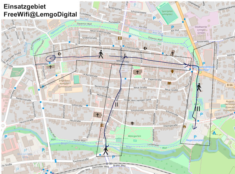 Um digitale Dienste in der Innenstadt niederschwellig nutzen zu können, ist eine gut ausgebaute offene Netzinfrastruktur erforderlich. Auf der Grundlage der Freifunk-Initiative wurde das in der Lemgoer Innensstadt umgesetzt.